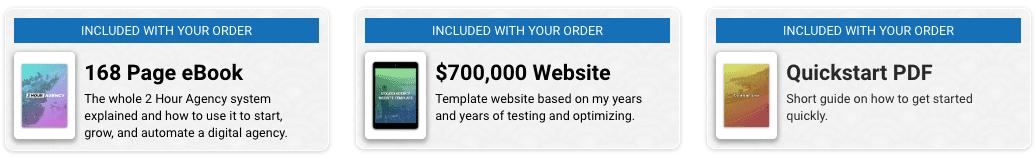 Click the button below and fill out the order form, and you’ll be reading the 2 Hour Agency in the next 2 minutes.
