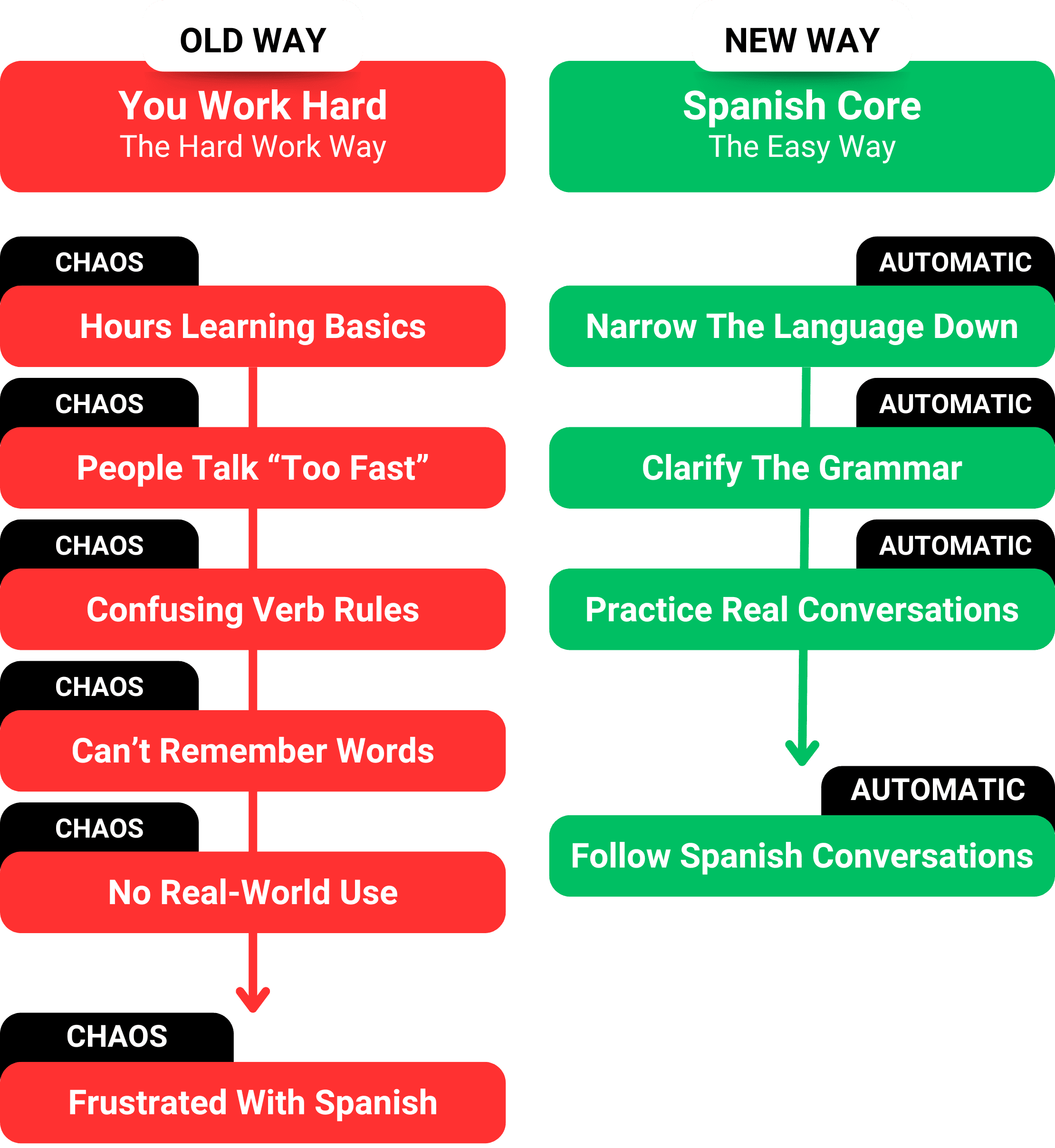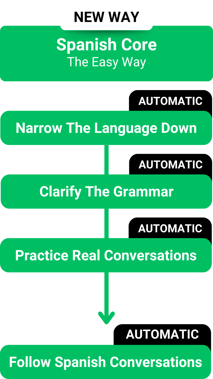 Those are the 3 steps in how the Spanish Core walks you through to your first Spanish conversations.